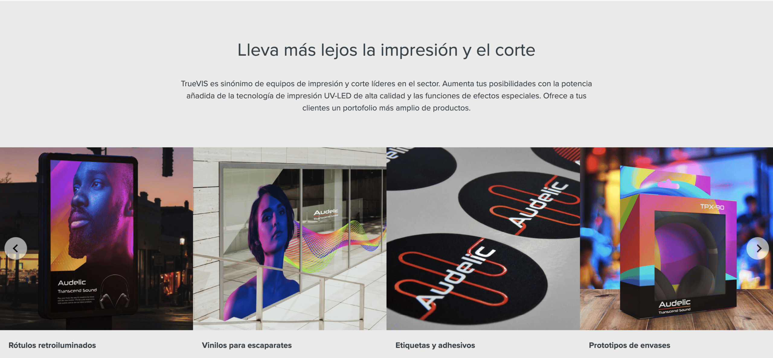 La serie LG añade una nueva dimensión a la impresión al combinar el legado de la Serie TrueVIS con las ventajas de la tecnología UV-LED. Las tintas UV de última generación imprimen en una amplia variedad de materiales y las lámparas LED garantizan un curado óptimo. Las tintas especiales, como la tinta blanca, barniz e imprimación, permiten obtener acabados de primera calidad en muchas aplicaciones. Además, las tintas roja y naranja simplifican la correspondencia de color.