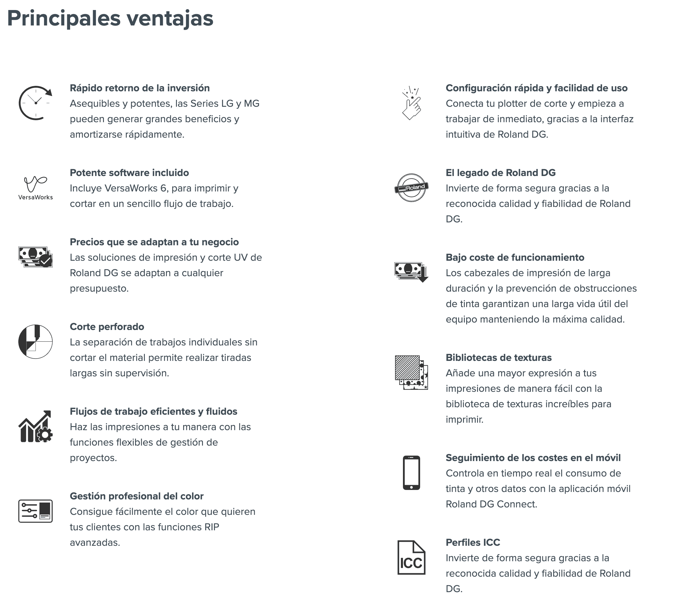 - Compatible con la app Roland DG Connect: que + da acceso instantáneo a datos importantes sobrelos proyectos de impresión, así como del negocio.